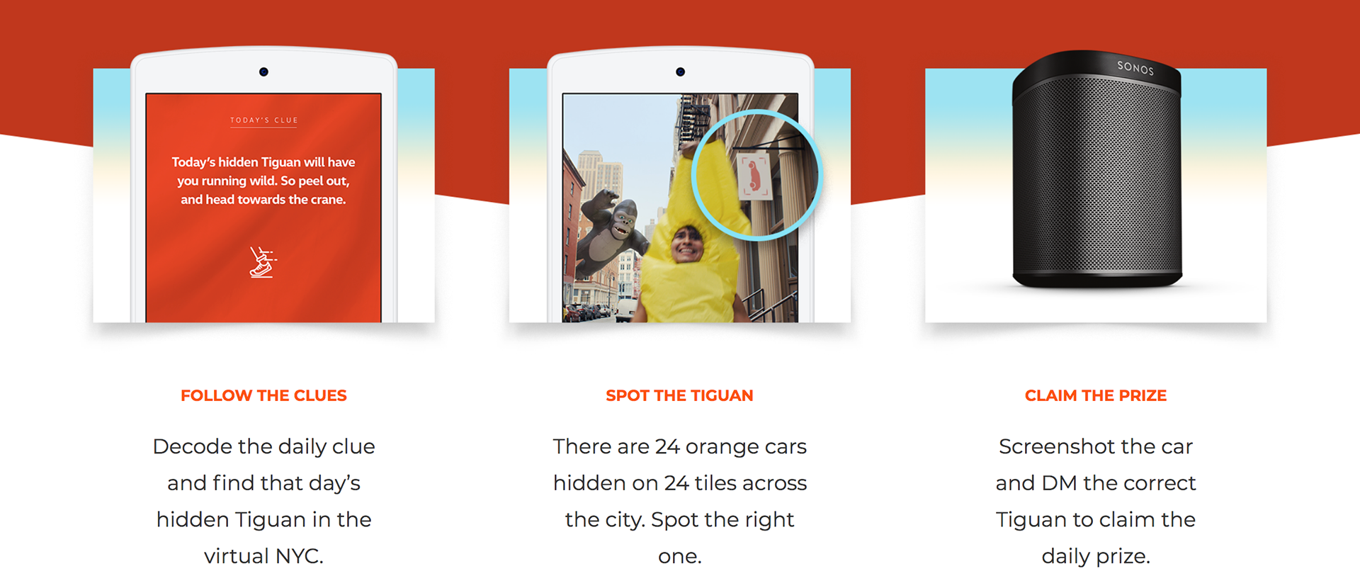 A 21-Day Scavenger Hunt within the Instagrams to find a trendy orange SUV.
